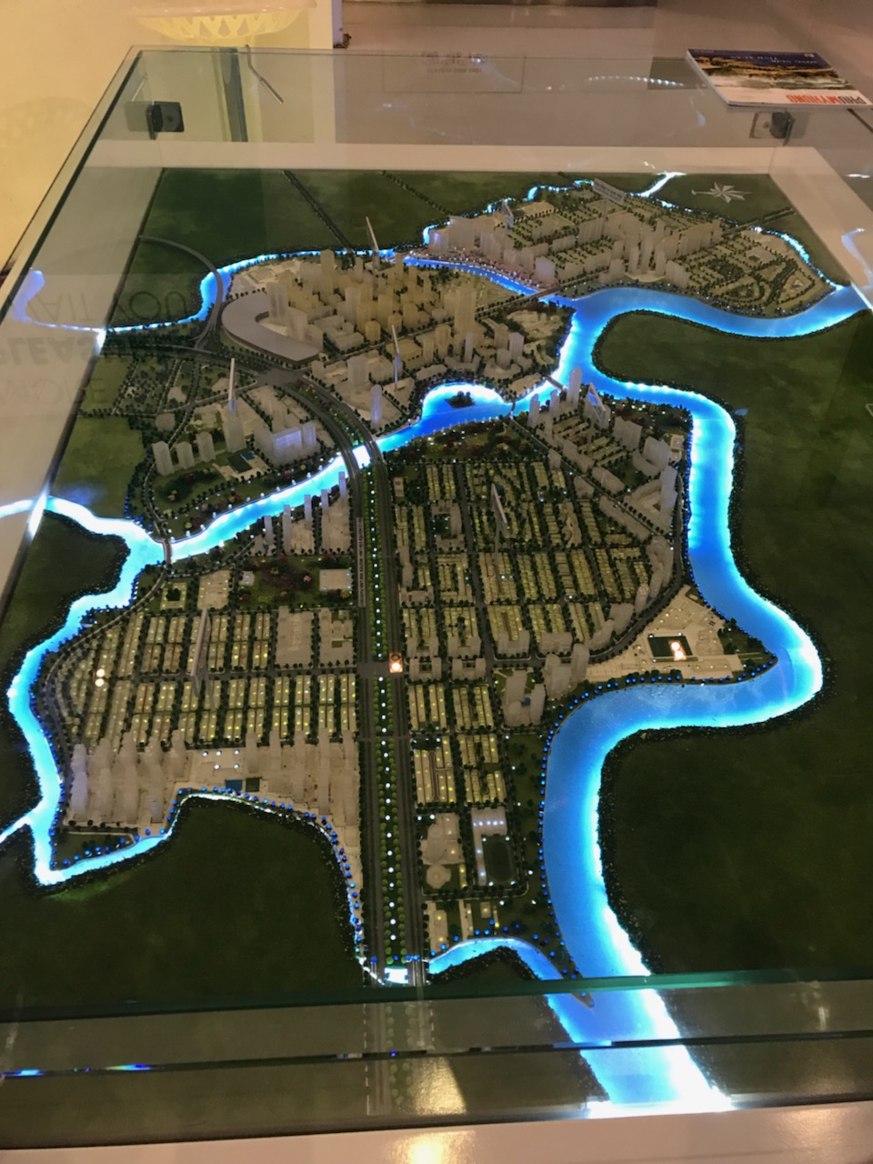 Today we visited Phú Mỹ Hưng Corporation, a joint Vietnamese-Taiwanese company responsible for the planning, construction, and upkeep of a large part of South Saigon. This area was once desolate wetlands, but Phú Mỹ Hưng turned the unused land into one of the most desirable neighborhoods in the city. Below is the a model of the city, displayed in Crescent Mall, the large curved building in the top left of the map.