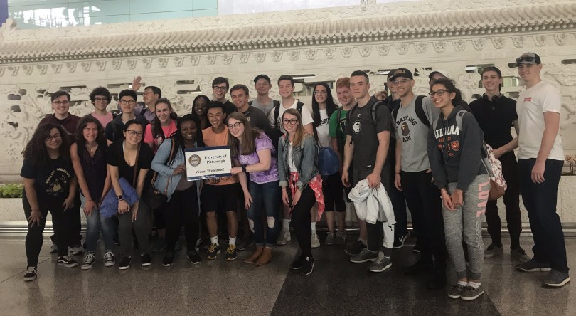 Beijing is an enormous city. I expected it to be big; but even just from looking through the airplane window, I could see buildings that stretched further than I could see. As the plane landed, I noticed that the skyscrapers were grouped, with 5 or 6 in each section. Everything in Beijing seems to be incredibly square – I even saw a couple buildings that resembled elongated houses. After a 14-hour flight, I was surprisingly less jet lagged than expected, so I was able to stay awake on the bus ride to dinner. The architecture I saw on the drive was very mixed; some buildings in Beijing are large, brightly colored apartment complexes with AC units outside every window, and others are dark, modern, glass-covered business towers. As for the small shops and restaurants, many have the English translation underneath the Chinese characters, yet the inverse of this is rarely seen in America. This was the case for our restaurant; however, the staff did not speak any English, so it was difficult when we asked them to identify some dishes. Our welcome dinner was delicious, and already I’ve tried so many new foods! My new tries tonight were taro root and a pork pancake dish, and my favorite dishes were Peking duck and the tea. This was our second family style meal as a group, which I like much better than traditional ordering because it’s easier to try a little bit of everything.