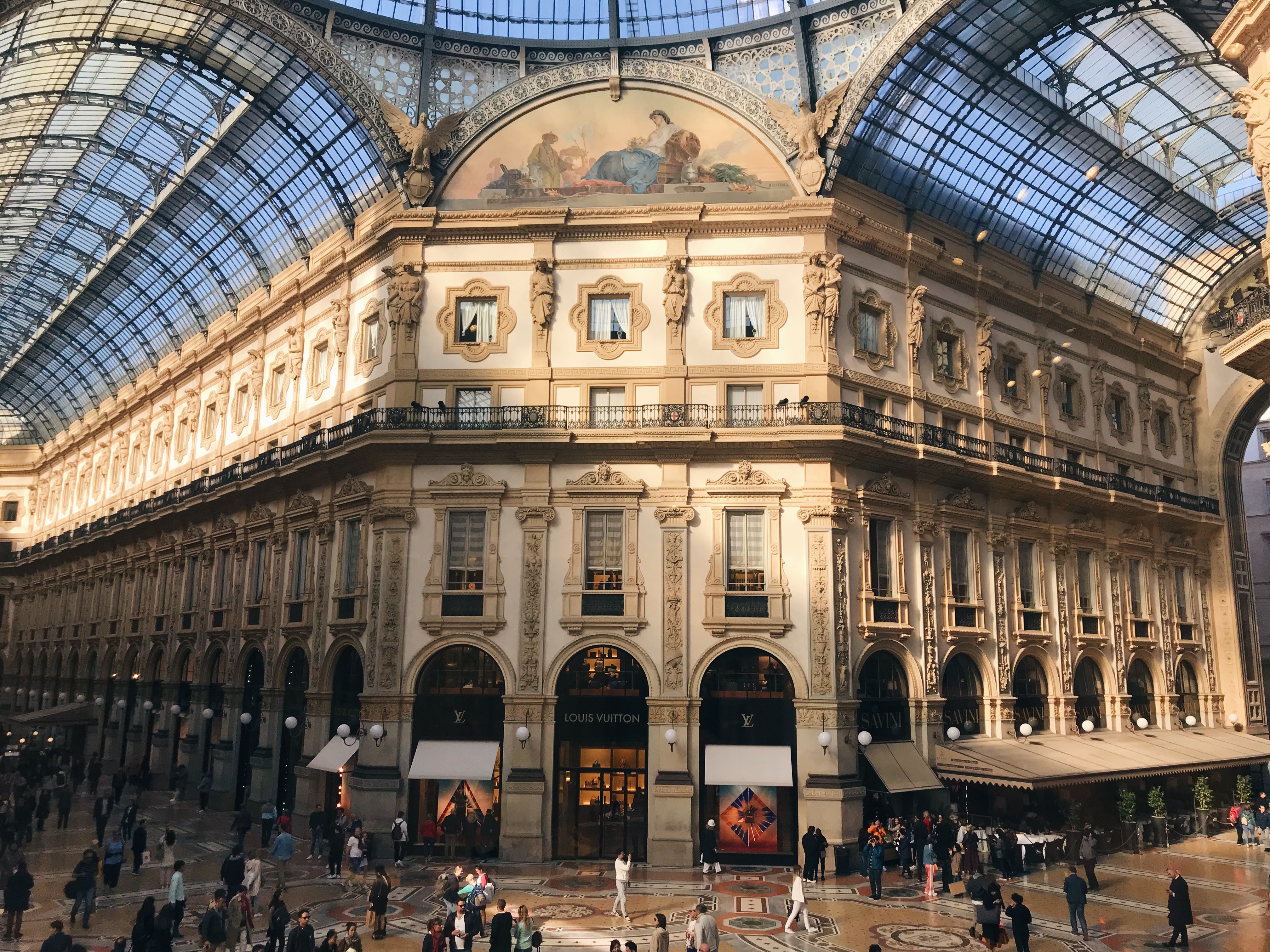 At the end of our walking tour we arrived at the two most beautiful buildings I’ve seen yet in Milan; I was absolutely blown away by the architecture. The first was the Galleria Vittorio Emanuele, which is Italy’s first shopping mall. Partially indoors, the ceiling and walls are stunning filled with designer stores. It was by far the most impressive and beautiful mall I have ever seen!