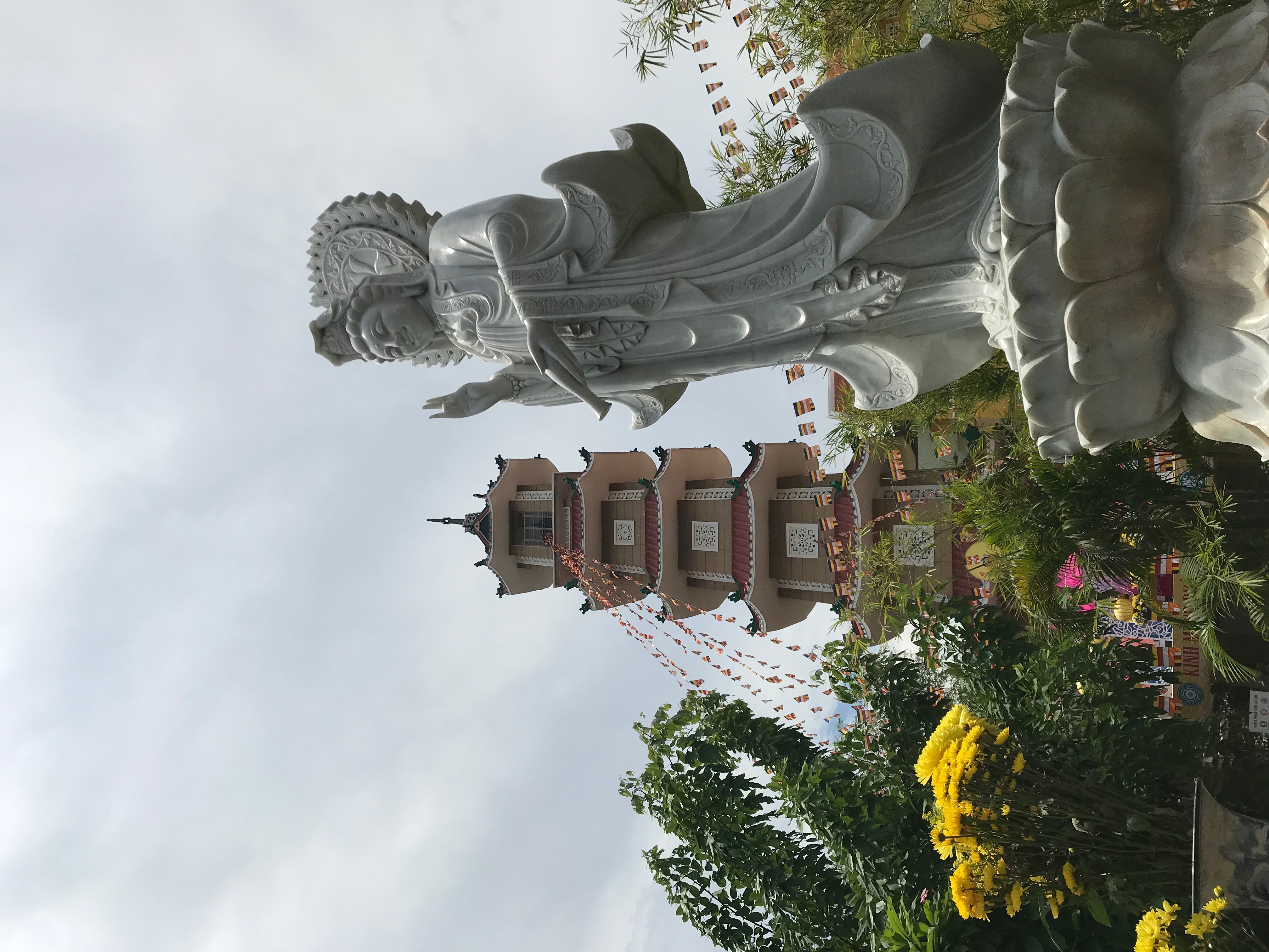 Today schedule was packed with activities from visiting a religious site to trying not to get lost in a giant indoor market. The different visits of the day really was a rollercoaster of emotion, so bear with me. The day began with a lecture (from my favorite lecturer of the trip) about Buddhism and its origins. The lecturer explained the four noble truths in the most iconic way: life sucks, life sucks because you want things, stop wanting stuff if you don’t want life to suck, the Eightfold Path is the way to stop wanting stuff. The Buddhist philosophy is a lot more complex than this obviously, but as a quick look, it is essentially what the ideas are about. What I really respect about this religion is that they don’t worship a god, but pray to the Buddha in order to remember his existence and the work he did in his lifetime. This religion is centralized around being a good person in order to realize life for yourself rather than a collective as most other religions do. The first religious stop of the day was a memorial for the monk that burned himself alive in protest of the Vietnamese lack of religious freedoms in 1963. The monument itself told a story of the events that occurred that day but after later watching a video of it, the impact was even greater. I can’t imagine witnessing such an event, let alone sacrificing my own life. This demonstration, in my opinion, needs to be something that is known by everyone in the world and never forgotten because of how much sacrifice and impact it brought. Soon after, we were able to go inside a nearby pagoda, the place of meditation and remembrance for Buddhists. As we walked on to the pagoda grounds, a man and a women leaving said to the group “may Buddha bless you all,” which perfectly exemplifies the religions ideals and gave a warm welcome to us even though we don’t share the same beliefs. The pagoda itself was absolutely stunning with a giant golden meditating Buddha statue at its far end and pictures of family’s ancestors throughout. The story of Buddha and the philosophy’s origins were painted on the pagoda walls as well. One thing I noticed when we walked in was that all the students that joined us today stopped and meditated immediately upon entering. Being able to go inside the pagoda and witnessing the students meditating as they normally would really added to the entire experience.