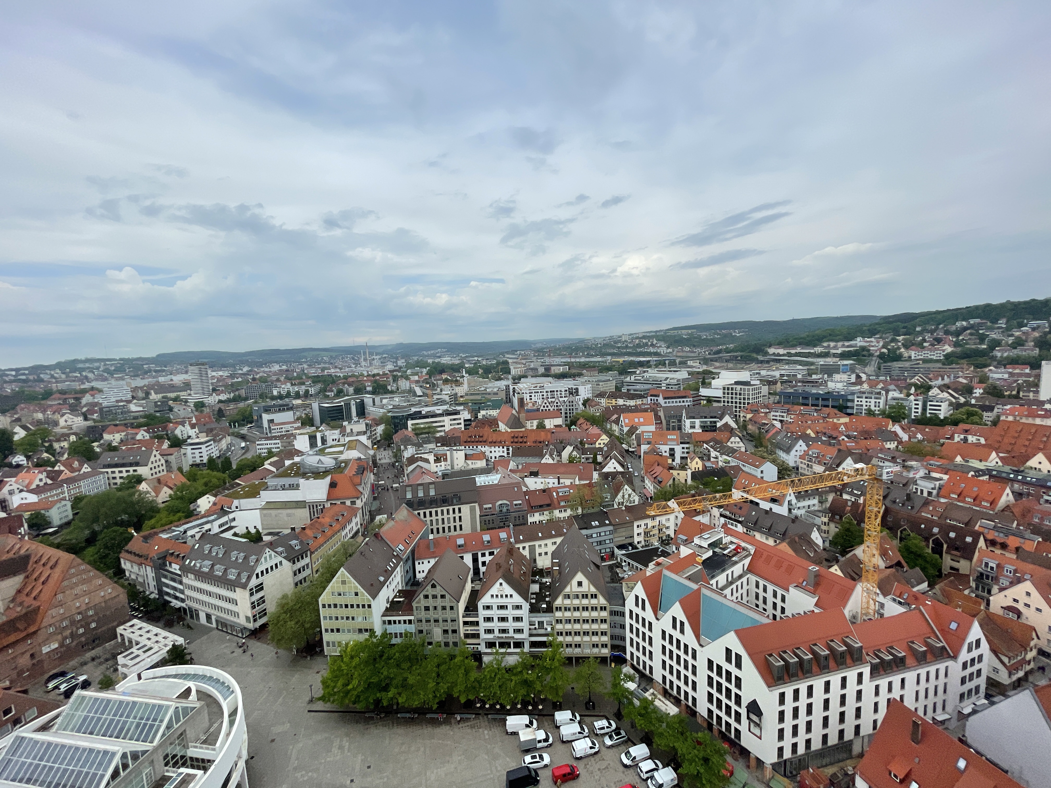 We visited Ulm today and took a tour of the city. We climbed 300 steps to get halfway up the tallest church tower in the world (other half was closed 🙁 ). The stairs followed a very tight spiral and we all realized we were very out of shape by the time we got to the top. The views from the top were absolutely stunning when we could see through the nets that had been put up due to construction. I have included one of the pictures that I took of the view from the top of the cathedral further down. The walk back down from the top was even more treacherous as we were going down the spiral staircase this time. After getting to the bottom safely, we then walked over to the crooked hotel that looks like it is falling into the canal. Apparently the furniture inside of the hotel is modified to be level. The entire city had a sleepy feel to it, like no one there was in a hurry. Even for a Monday, there was not a lot of people rushing about to get lunch or run errands.