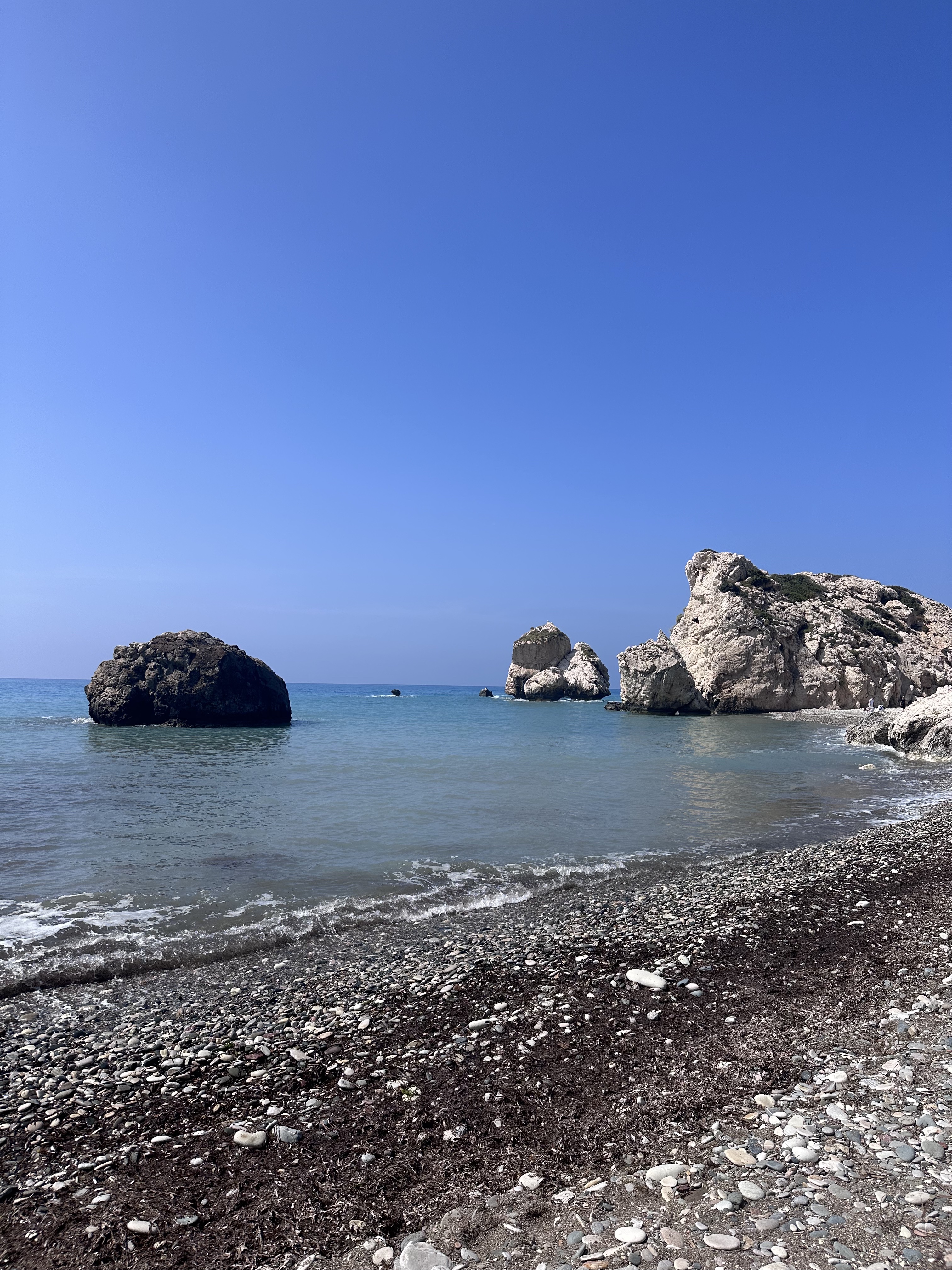 Today we visited Paphos. Paphos is located on the western side of Cyprus. On our we there we stopped at Aphrodite’s rock. The story behind this location is that Aphrodite was born there from the sea foam that was collected along the shoreline from incoming waves. Aphrodite is a Greek god of love. There is also a belief that if you swim around the rock three times on a full moon at night and without clothes, you will have eternal youth and beauty. It is also very common not far from Aphrodite rock that people will tie fabric to a bush. This represents the bond of a relationship very similar to the locks you see in Paris on bridges.