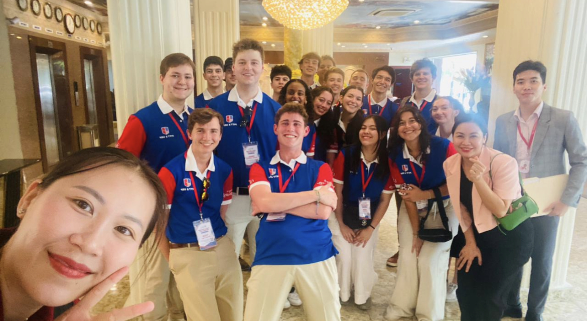After a long 30 hours of travel we finally arrived to our hotel in Ho Chi Minh City at about 2am. Luckily I was able to sleep and wake up in an entirely different world. When getting breakfast I couldn’t help but be drawn to the swarms of motor bikes rushing through the streets. Its as if there are no rules to the road, yet somehow nobody gets hit. I’ve learned that when your crossing the street you cannot stop, you have to keep moving to not get hit. After that were fitted for custom suits. It was a great experience, we got to pick out patterns, colors, styles, and so much more. Looking forward to getting those. Following that we were fitted for a áo dài, the traditional attire of Vietnam. Then we went to lunch, being served a huge variety of foods. Everything from rice, to chicken, to seafood, and much more. We then had our welcome ceremony at UEF. This was a different kind of welcome. Upon arrival there were what must have been a hundred students and faculty outside to greet us, gift us, and take pictures. There were even two mascots. We than had the ceremony where we heard from a variety of UEF reps, Pitt reps, and even Vietnam Ministry of Education reps. We got to participate in traditional Vietnamese games and dances with the students, as well as many more photos which I was told were posted to the UEF Facebook. After we went on a bus tour of the city and saw many landmarks. This was followed by dinner served by UEF’s culinary students. It was a pretty packed day to say the least.