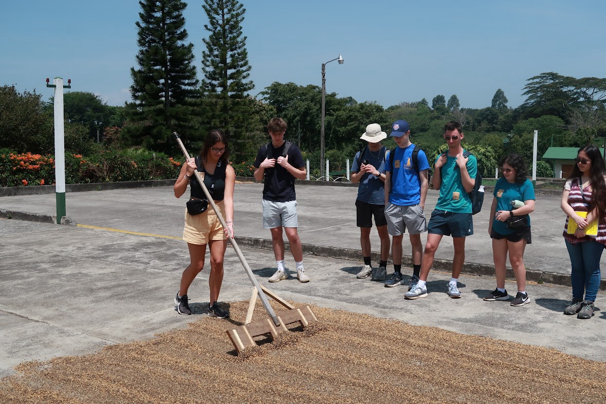 We went outside to see the coffee beans on the ground as we were told they had to be turned every 45 minutes. I and a few other students turned a row of beans with the wooden rake. We then made our last stop, where they roasted the coffee beans. I learned how slight differences in how much the roasted beans change the coffee. A light roast is 15 minutes in the roaster, a medium roast lasts 17 minutes, an espresso lasts 20 minutes, and a dark roast lasts 22 minutes. There are two seasons in Costa Rica: the rainy season and the dry season. Too much rain affects the production, while no rain would result in no coffee. Another fun fact I learned is that there is a competition called the Cup of Excellence, where all the farmers bring their coffee to see who had the best season. Baristas rate everyone’s coffee. Doka won in 2022.