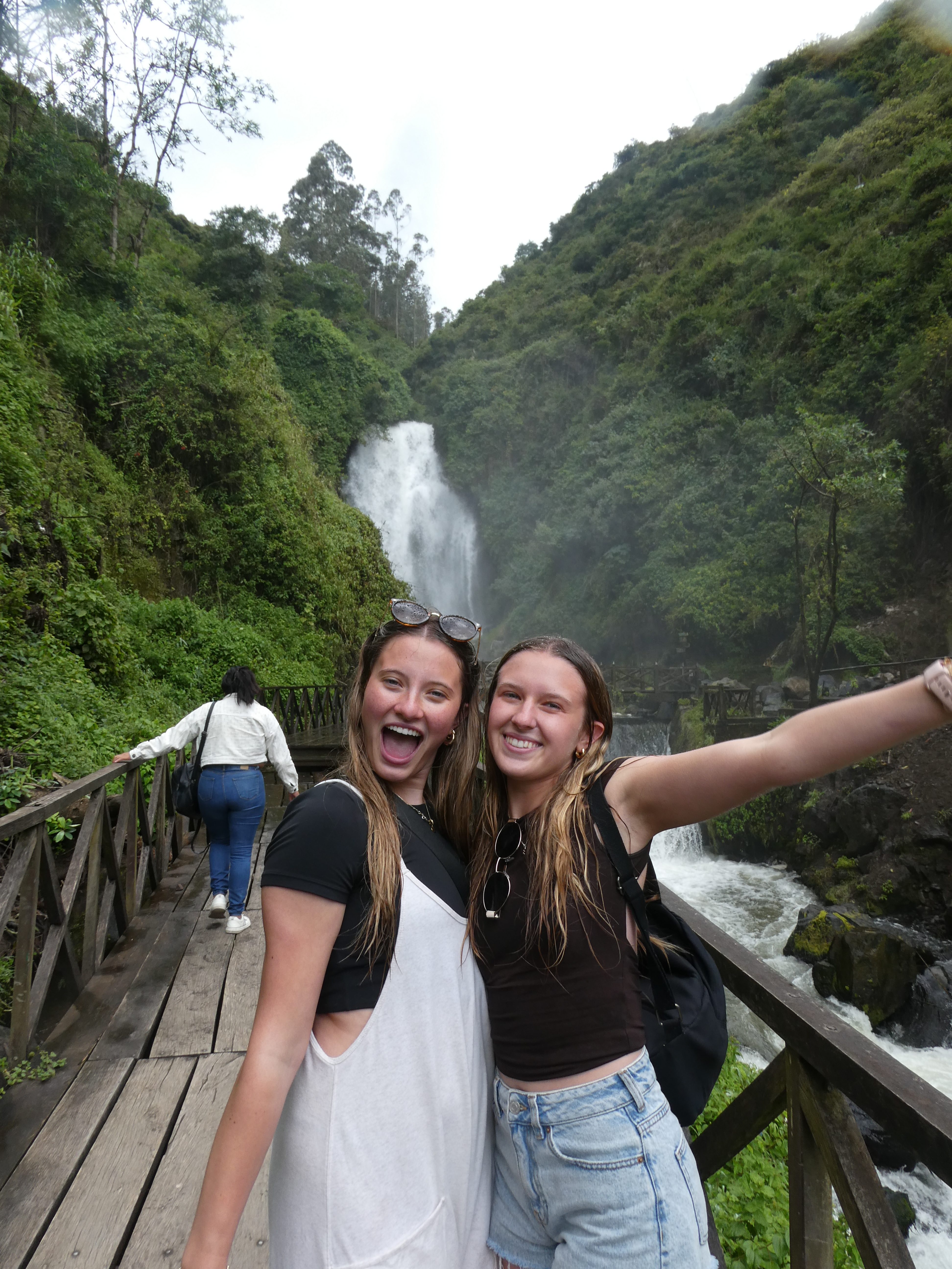 Next, Maria brought us over to a very beautiful waterfall. When we walked close, we all got soaked from the splashing and misting. She also talked to us about the energy circle we sat in and how they believe in a more circular cycle of life and describes the United States to be more of a straights line. We also learned about her traditional clothing and the significance such as the necklace is gold for wealth and corn. We went to a restaurant back in town for lunch where I got mashed potatoes with chicken and shrimp.