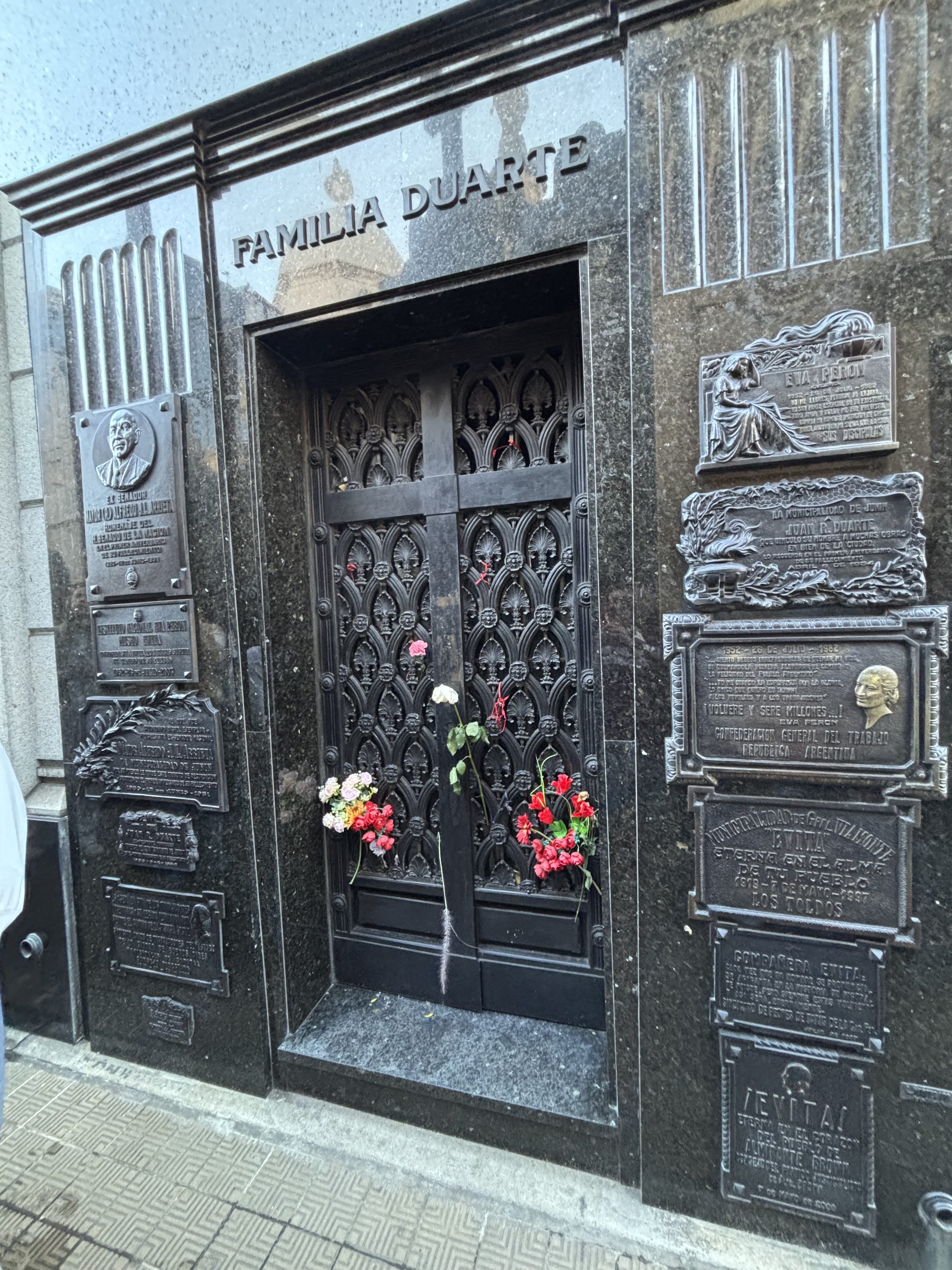 Today we took a walking tour around Recoleta and the Recoleta Cemetery. On the way to the cemetery we saw many historical buildings like monuments to soldiers, embassies to other nations and many churches. Recoleta is known for its open air market which we went around to immerse ourselves in their culture. The cemetery held many powerful and influencial figures in Argentinian history. It ranged from rich families to prior presidents. Our tour guide gave us many stories about the people buried there and the history behind the cemetery. Evita is also buried there, however, her husband, Juan Perón is not.