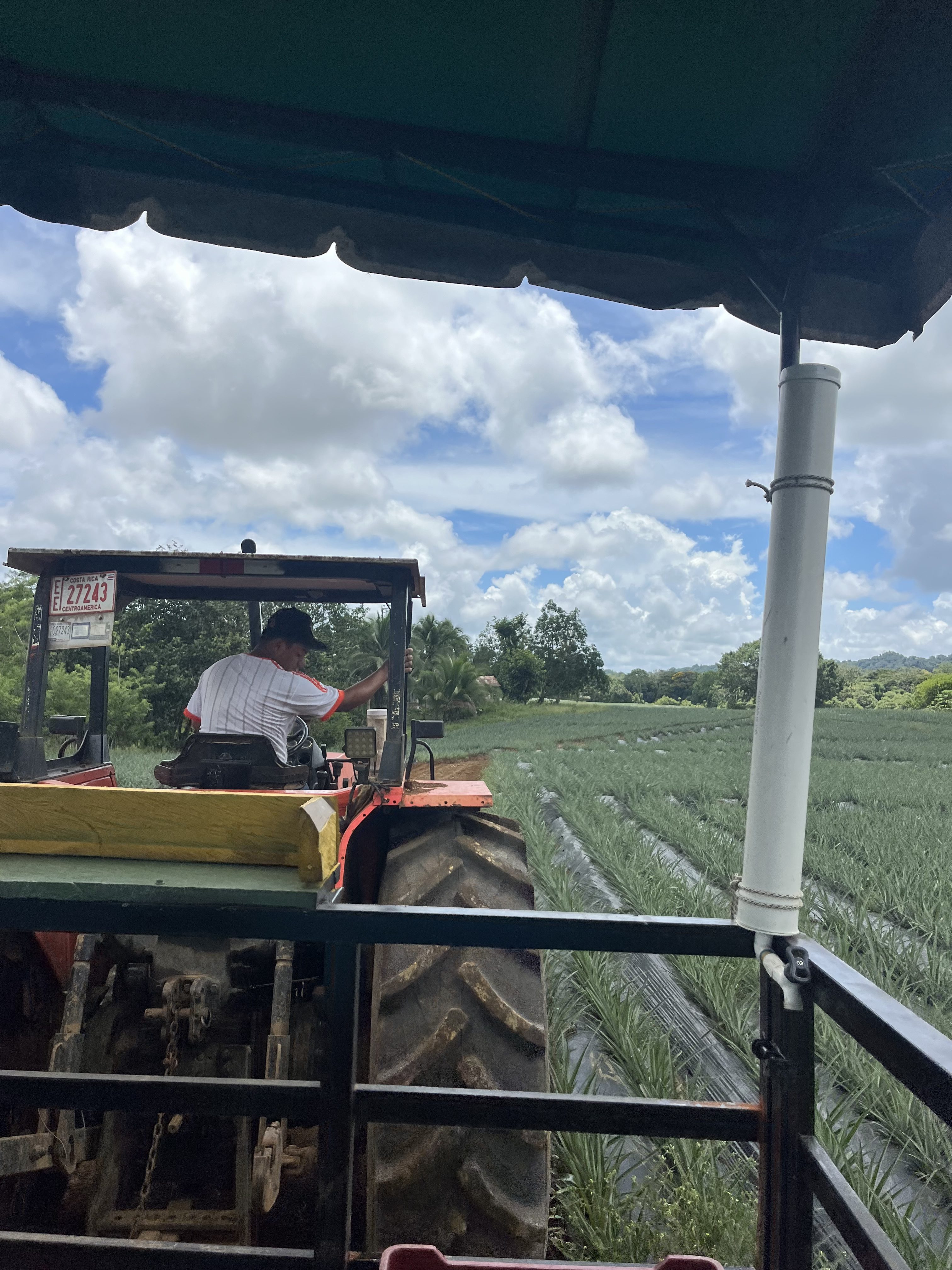 Today was my favorite tour yet because it included pina coladas and fresh pineapple. We visited an organic pineapple plantation that has been running since 2008. They harvest around 20,000 kilos of pineapple per week and export them to stores and other countries. What I found most interesting was the stark contrast between the coffee supply chain and the pineapple supply chain. The pineapple is simple and low maintenance while the coffee bean has to be carefully picked, peeled, dried, roasted and then shipped. The pineapple starts from planting the crown or the sucker of the pineapple fruit in the ground. This is then watered with a sprayer every few weeks. It will usually take 2 years for a plant to fruit, but this can be expedited after the first fruit with an ethanol spray which helps the flower bloom. They harvest the fruit a few months after the flower blooms and then ship it. Much of the work is automated with tractors, sprayers and sometimes a conveyor belt to transport the fruit. This simple process helps them harvest and export faster and more efficiently.