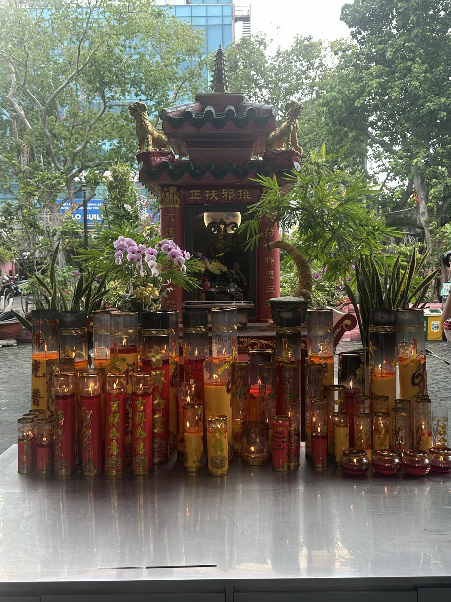 Today, we began our day with the usual trip to UEF to learn more about Vietnamese culture and religion, focusing on traditional family values and the Buddhist religion. Afterwards, we visited the NgocHoang pagoda close to the university to observe the religion in real life. Upon entering the pagoda, I was surrounded by statues of buddha and incense stations for praying. As well, I could see many Chinese characters throughout the temple, including on statues and banners. This mix of the Chinese and Vietnamese language, as well as the elements of Buddhism and Taoism together, seems to represent the deep history Vietnam has with China and how China has left its imprints in the country.