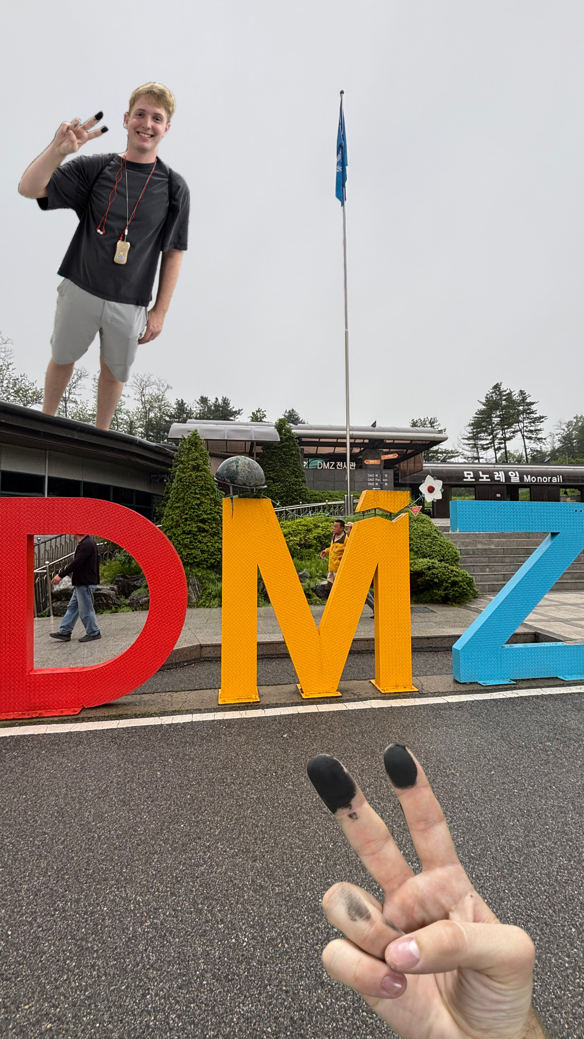 Today was one of my favorite days of the trip! We started by taking a bus ride to the area of the DMZ, the Demilitarized Zone, between North and South Korea. Before starting our tour, we had lunch at a restaurant where we had a soup that was greens, hotdogs (and various other meats), and cheese- an interesting combination, but it was actually good! After eating, we headed to the visitor center where we would be boarding our tour at 12:30. We got there around noon, so we had some free time so myself and some friends went to Dunkin to grab coffee and a donut. Then it was time, we boarded the bus that would take us into the DMZ. Once on, it headed to the Unification Bridge where we got our identities checked with our passports. After being checked, we proceeded over the bridge to the first stop which was the 3rd Tunnel discovered that North Korea dug to get into South Korea. We had an hour at this stop to walk down the tunnel and take pictures with the DMZ sign. The tunnel was an experience. You can’t take your phone or anything besides a water bottle and the cave is about 5-6 feet tall throughout, so I had to duck for much of it. You walk down a big cave, then you walk flat for a while, to finally reach the end where you can see through a window the area that goes to North Korea in the tunnel. After seeing the tunnel, we had to walk back up, which was exhausting. Then being tired, we all got a picture in front of the DMZ sign and headed back on the bus. Our final stops were an observatory into the North, but it was too foggy to see anything, then a 15-minute stop at a souvenir shop. We got back to our coach bus around 3:45 and then headed to a baseball game! We cheered for the Kiwoom Heroes, Seoul’s Baseball team. We played the Samsung Tigers. There was so much energy in the stadium- cheerleaders, flashing lights, noise makers, and a lot of cheering! Unfortunately, we lost the game, but it was such a fun experience. What a great day!